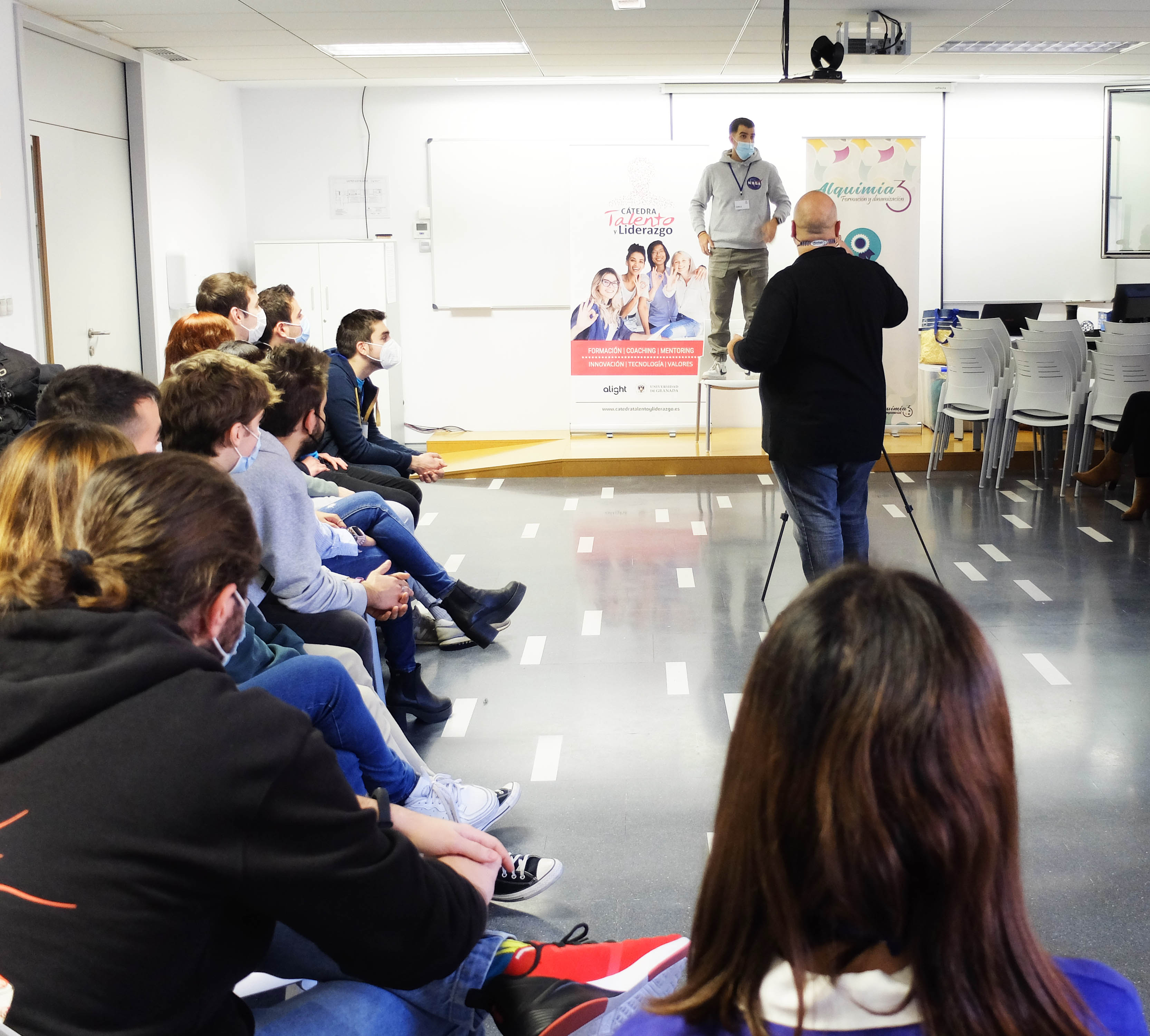 Música, masajes, risas, ejercicios de respiración abdominal y relajación son algunas de las técnicas empleadas en el seminario de comunicación de la Incubadora de Talento de la Universidad de Granada dentro del Programa de Aceleración de Competencias.