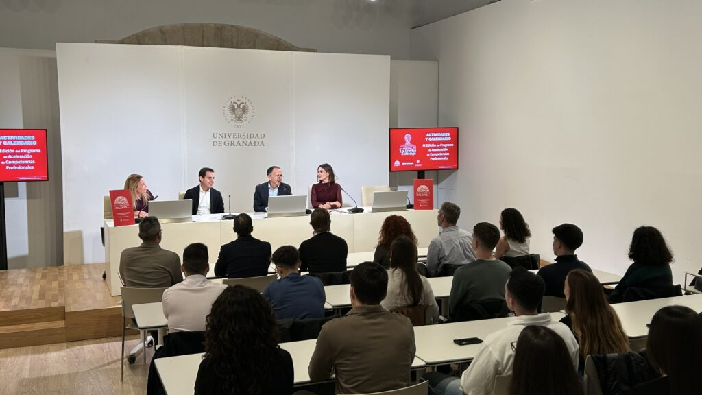 The University of Granada held yesterday, November 25th, the official inauguration of the Professional Competency Acceleration Program (CAP), one of the flagship initiatives of the Talent Incubator aimed at developing university potential. The event took place at the Royal Hospital and was attended by institutional representatives, executives from Strada Global —the program’s sponsoring company—, mentors, faculty members, and the newly selected students for this edition.