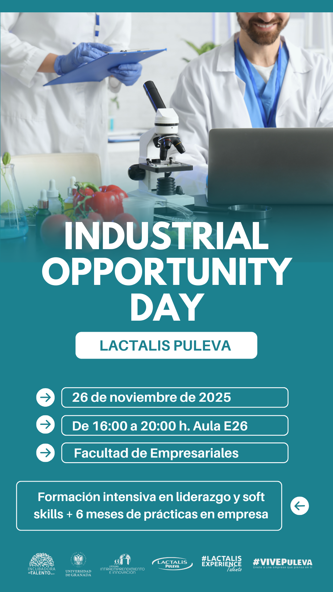 La Incubadora de Talento de la Universidad de Granada ofrece, en colaboración con la empresa Lactalis Puleva, este programa de formación e impulso de carrera profesional orientado a personas con potencial para convertirse en personal técnico de equipos en las áreas operacionales de I+D, calidad industrial, seguridad alimentaria, medioambiente y producción. Especialmente pensado para personas con formación en titulaciones universitarias como química, biología, ciencias y tecnología de los alimentos, bioquímica, biotecnología, farmacia, nutrición y dietética, análisis biológico, diagnóstico de laboratorio, ciencias ambientales, entre otras…