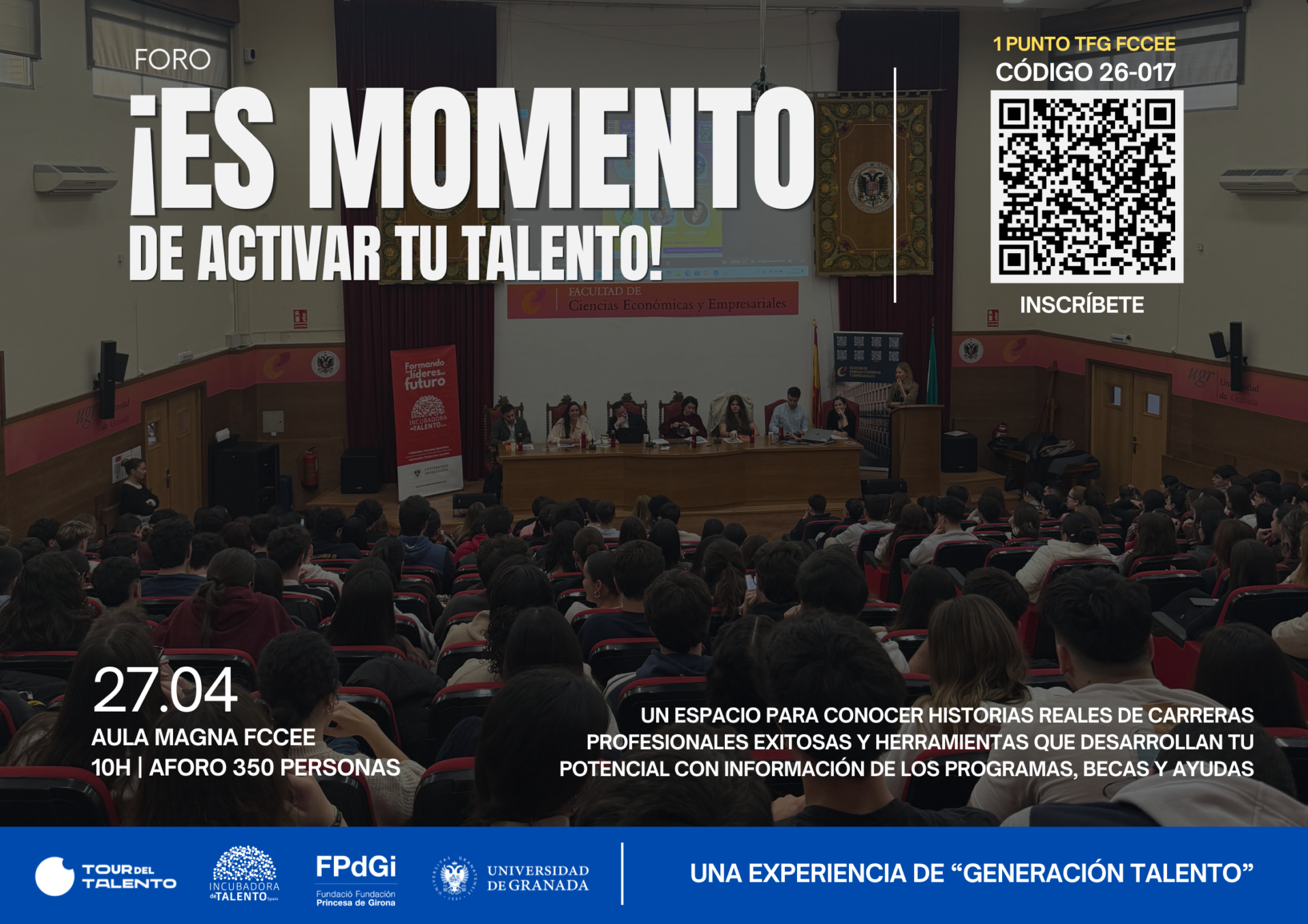 Desde la Incubadora de Talento de la Universidad de Granada nos enorgullece anunciar nuestra colaboración con la Fundación Princesa de Girona (FPdGi). Esta alianza, enmarcada dentro de las actividades del Tour del Talento, nace con un objetivo claro: dotar a nuestros estudiantes de las herramientas, la visión y los contactos necesarios para destacar en su futuro profesional.