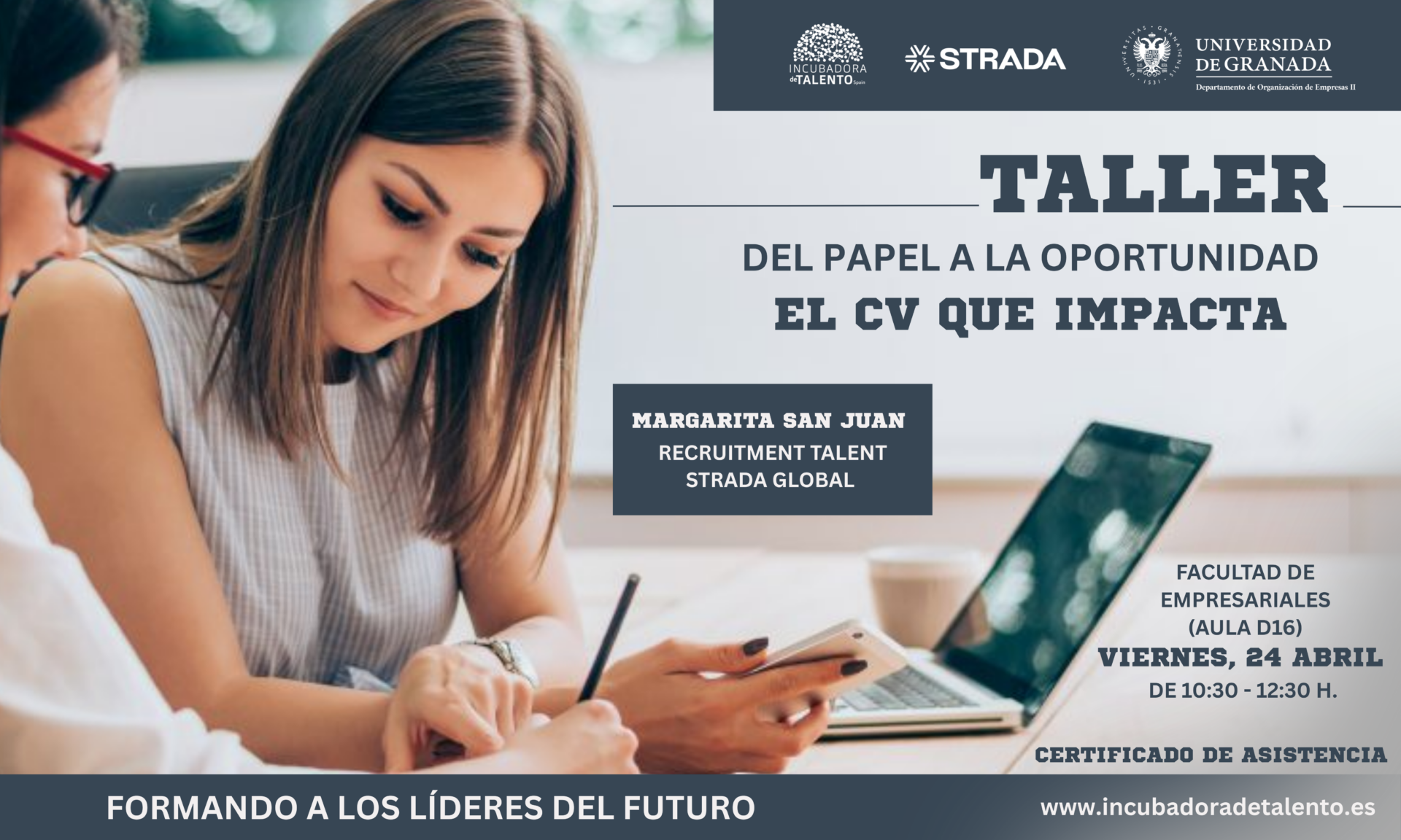 Desde la Incubadora de Talento de la Universidad de Granada seguimos apostando por formar a los líderes del futuro. Por eso, hemos organizado el taller práctico «Del papel a la oportunidad: El CV que impacta», diseñado para que aprendas a transmitir todo tu potencial y consigas esa primera entrevista.